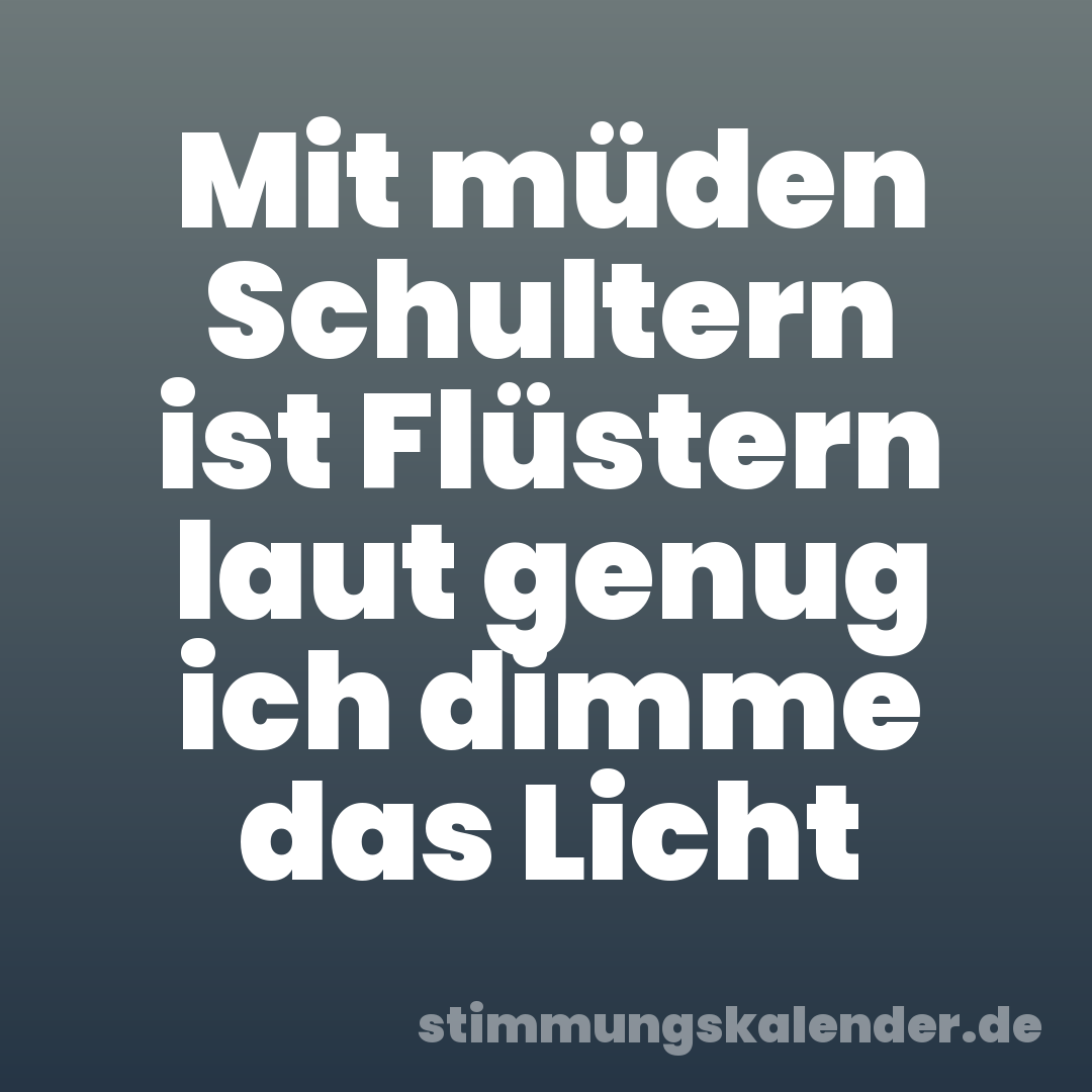 Mit müden Schultern ist Flüstern laut genug ich dimme das Licht