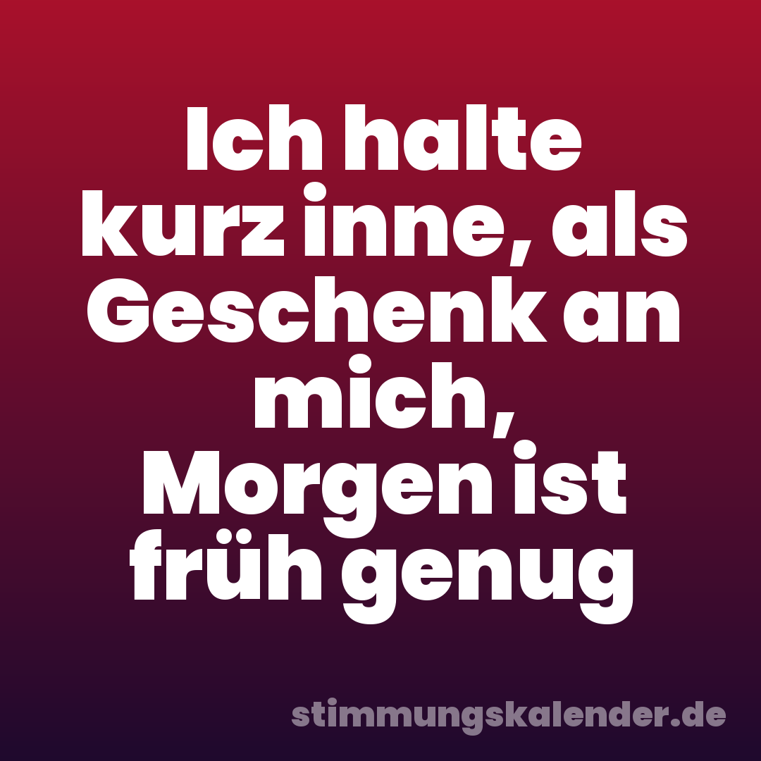 Ich halte kurz inne, als Geschenk an mich, Morgen ist früh genug